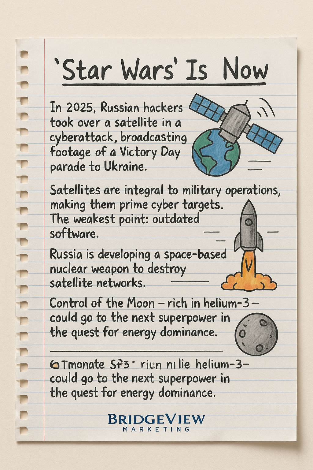 On May 9, 2025, Russian hackers successfully hijacked a satellite that provided television service to Ukraine. Instead of their favorite programming, people in Ukraine saw footage of Putin presiding over the Victory Day parade in Red Square–a move that signaled that the war in space is here.