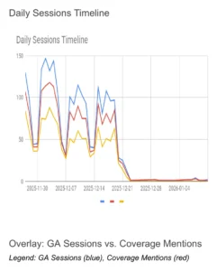 - GA4 tracks traffic spikes and behavior tied to coverage windows