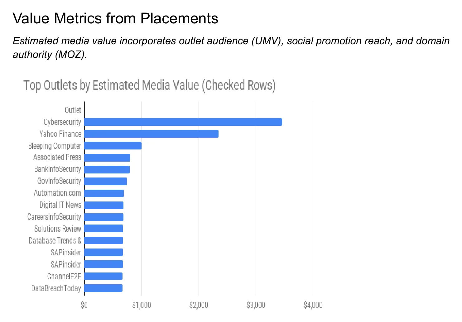 The PR Rosetta Stone report calculates the true value of every earned media placement based on news, agency-written byline, MOZ score (domain authority where the placement was posted), backlinks back to the client’s product pages, and the number of the media placement’s monthly website visitors and social media footprint (because publications promote your news too). All this has a monetary value. It’s a realistic ROI, not based on the traditional Advertising Value Equivalency (AVE) in the millions of dollars, but a true figure in the hundreds of dollars per media placement.
